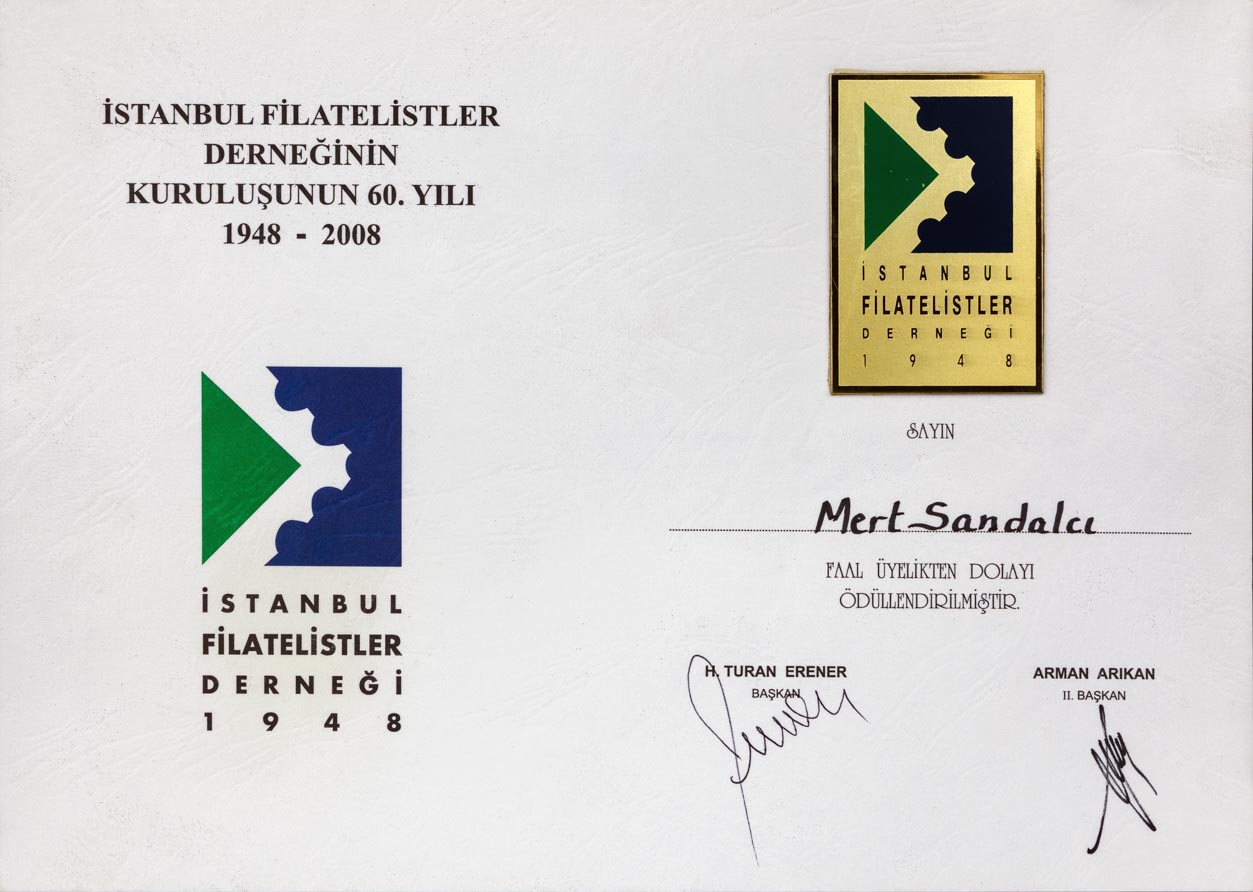 İSTANBUL FİLATELİSTLER DERNEĞİ KURULUŞUNUN 60. YILI PUL SERGİSİ FAAL ÜYELİK PLAKETİ