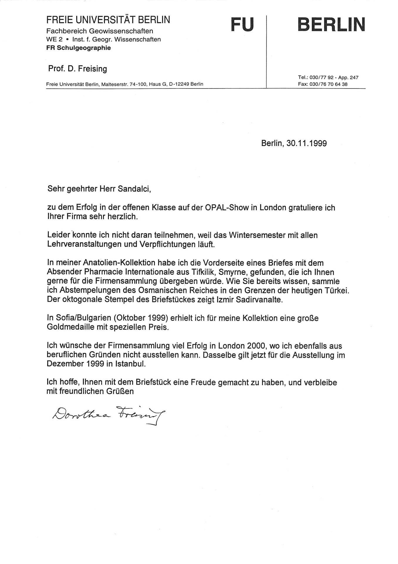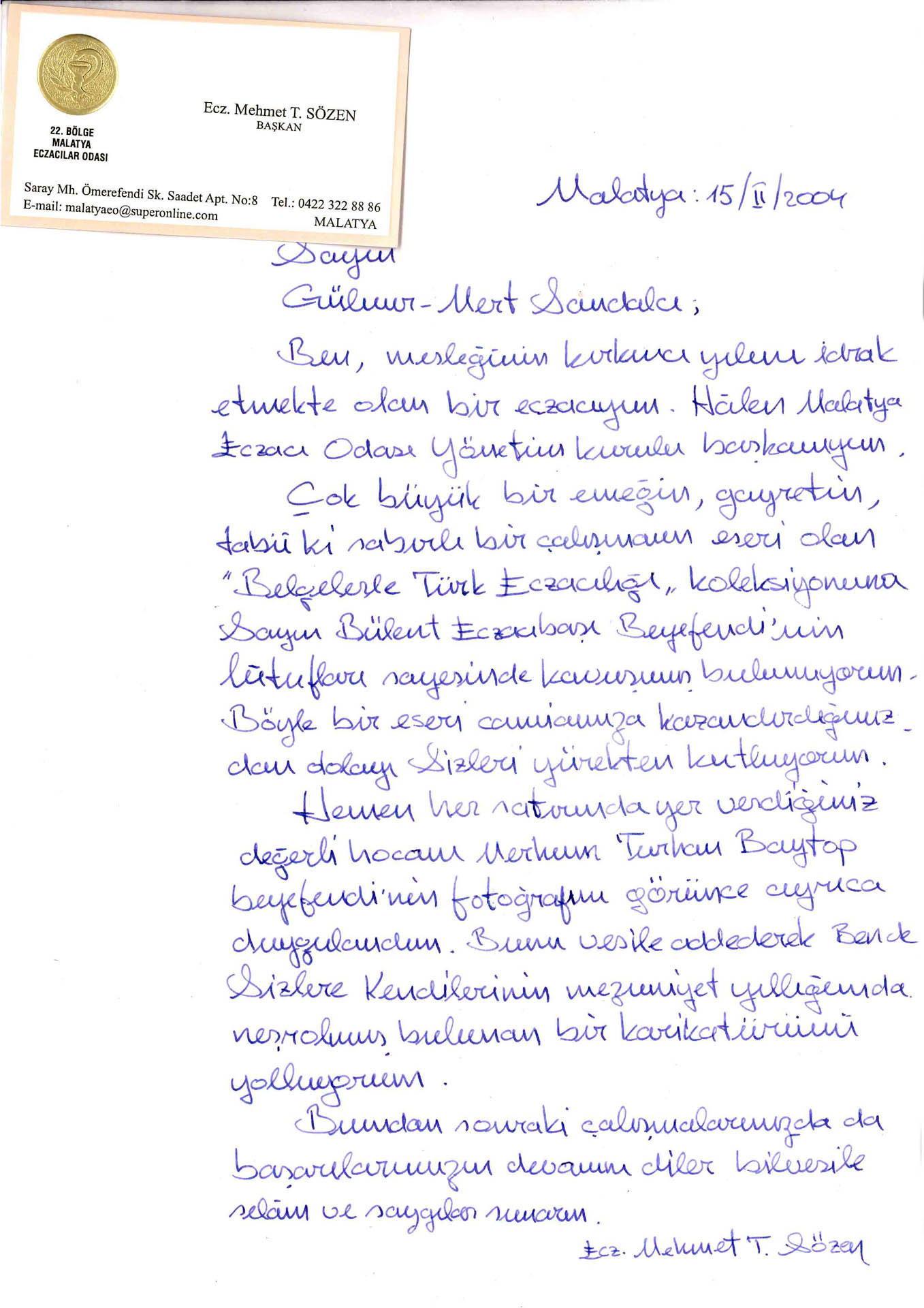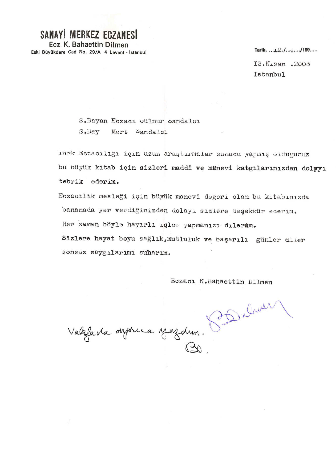 İSTANBUL ÜNİVERSİTESİ TEŞEKKÜR MEKTUBU - 2003